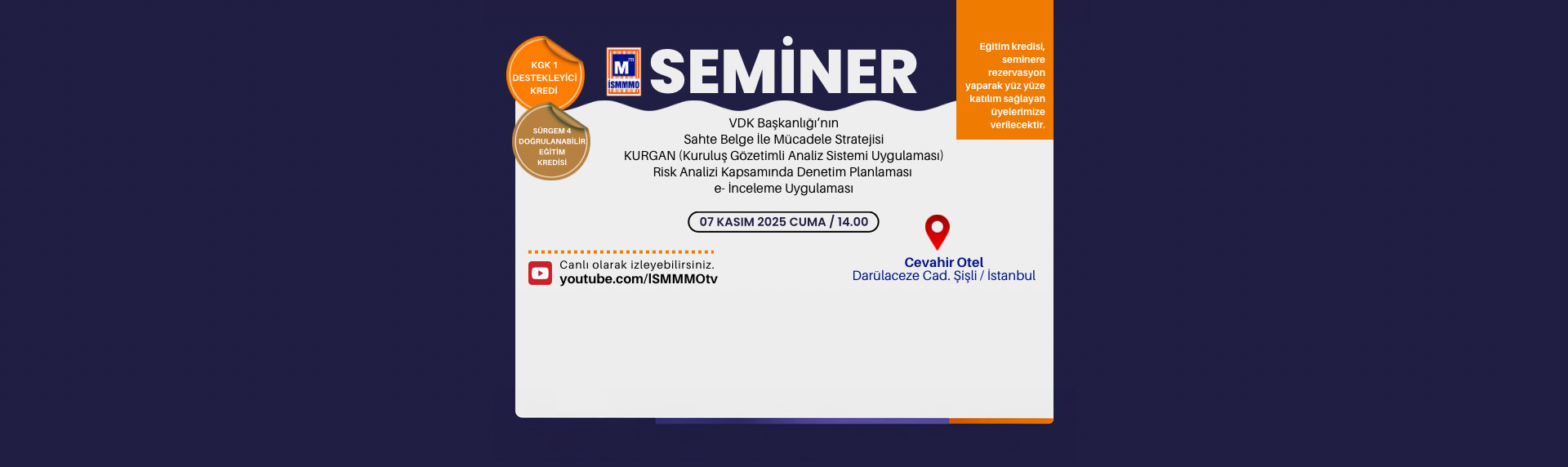 SEMİNER: VDK Başkanlığı'nın Sahte Belge ile Mücadele Stratejisi, KURGAN, Risk Analizi Kapsamında Denetim Planlaması ve e-İnceleme Uygulaması