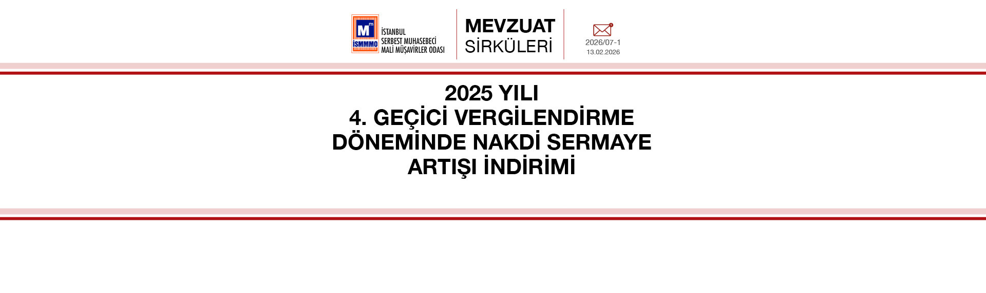 SİRKÜLER: 2025 Yılı 4. Geçici Vergilendirme Döneminde Nakdi Sermaye Artışı İndirimi