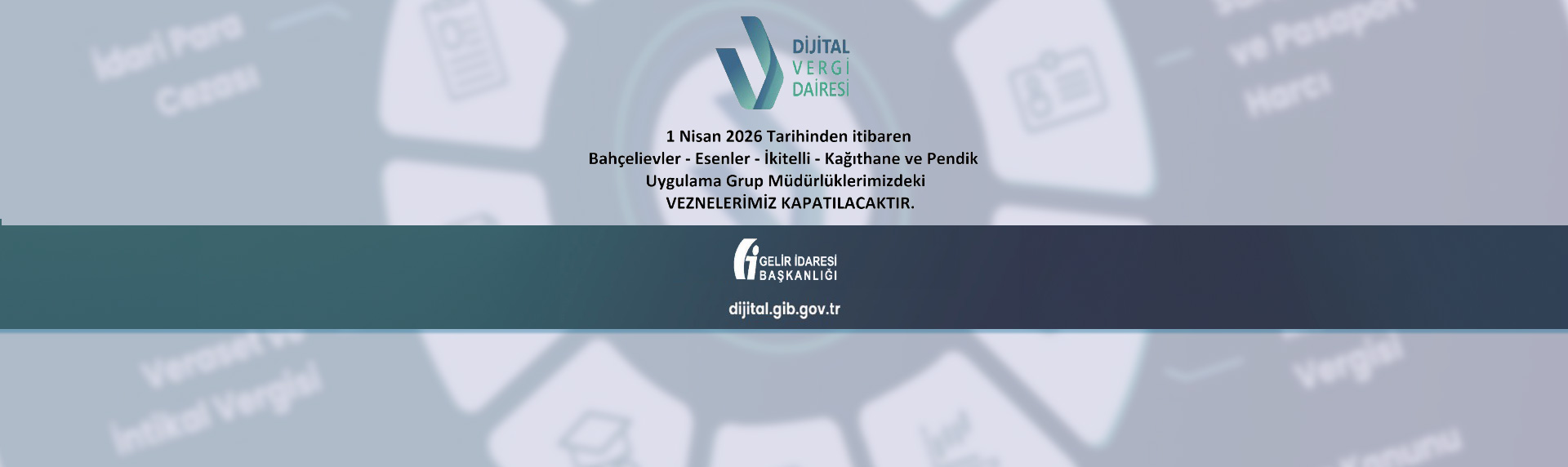 1 Nisan 2026 Tarihinden İtibaren Bahçelievler - Esenler - İkitelli - Kağıthane ve Pendik GİB Uygulama Grup Müdürlüklerindeki Vezneler Kapatılacaktır.