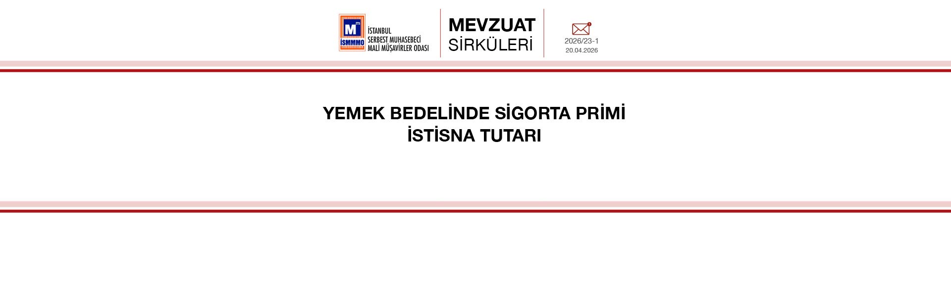 Mevzuat Sirküleri 2026/23-1: Yemek Bedelinde Sigorta Primi İstisna Tutarı