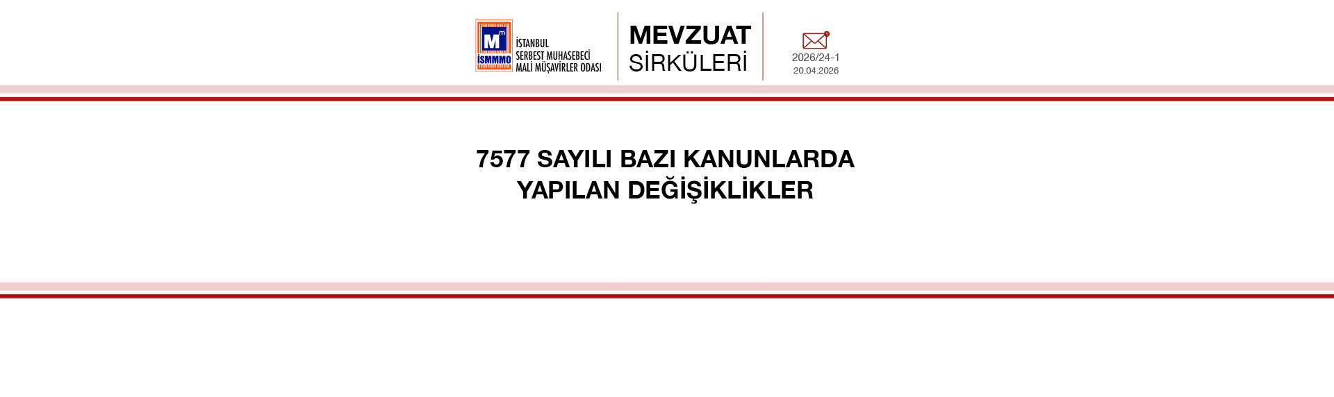 Mevzuat Sirküleri 2026/24-1: 7577 Sayılı Bazı Kanunlarda Yapılan Değişiklikler