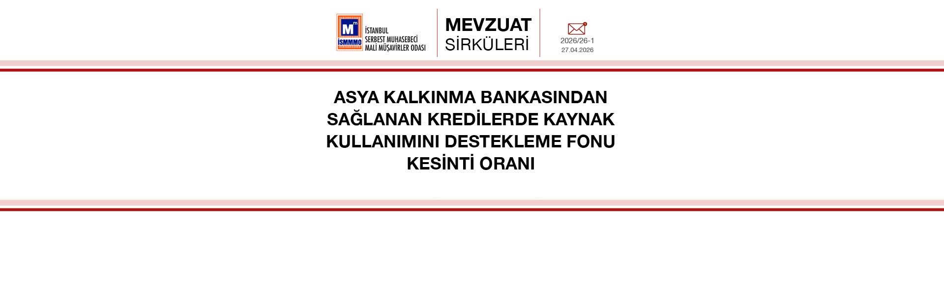 Mevzuat Sirküleri 2026/26-1: Asya Kalkınma Bankasından Sağlanan Kredilerde Kaynak Kullanımını Destekleme Fonu Kesinti Oranı